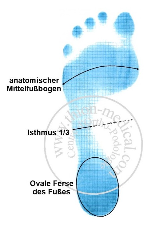 Abrollbewegung eines „normalen“ Fußes beim Gehen oder Laufen: Der Fuß setzt mit leicht nach außen gedrehter Ferse auf. Die Abstützung setzt sich mit dem Erscheinen des fünften Mittelfußköpfchens fort. Deren Verbindung bildet den Isthmus, der den hinteren mit dem Vorfuß entlang der Außenkante verbindet. Durch die Verbindung zwischen dem ersten und fünften Mittelfußköpfchen tragen die Zehen das Gewicht, und die Ferse hebt sich. Nur die Mittelfußplatte und die Zehen tragen das Gewicht. Der Gangzyklus endet mit dem Aufsetzen des ersten Mittelfußköpfchens und der Großzehe, wodurch der Vortrieb abgeschlossen wird.